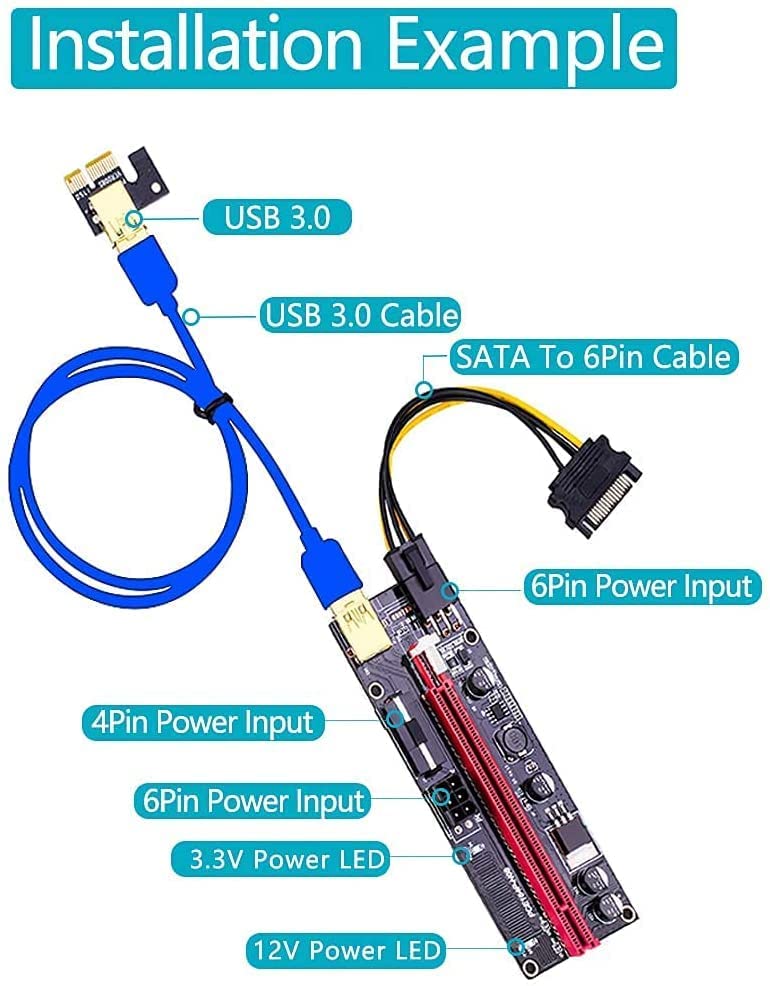 ?? ????? ??? ??? ??????????– This Superior Pcie risers card was designed with LED alternate lighting, with these unique color RGB LED lights, you will know directly whether the power adapter is working or not and feel ease when mining.