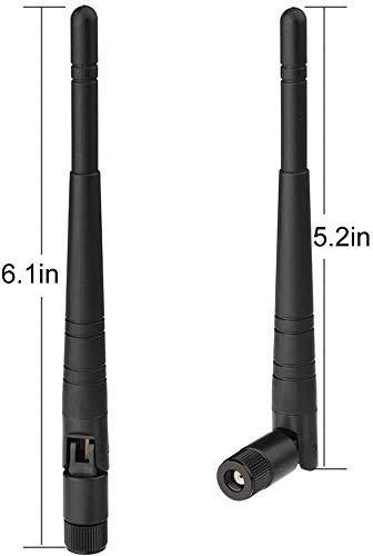 Specification Frequency: 2.4Ghz VSWR<1.8 Gain: 5dBi Polarization:Vertical Impedance:50 Ohms Orientation: omni-directional Antenna Connector: RP-SMA Male Antenna height: 156mm / 6.1 inch (straight); 133mm /5.2 inch ( rotated by 90 degree) Maximum input Power: 50W