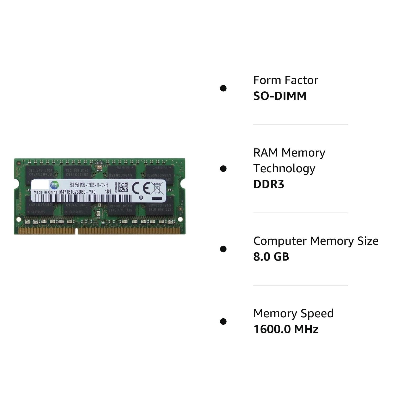 8GB DDR3 PC3L-12800 1600MHz 204-pin SODIMM Orignal Ram Memory Module High-Performance for Samsug laptops (3 Years Warranty)