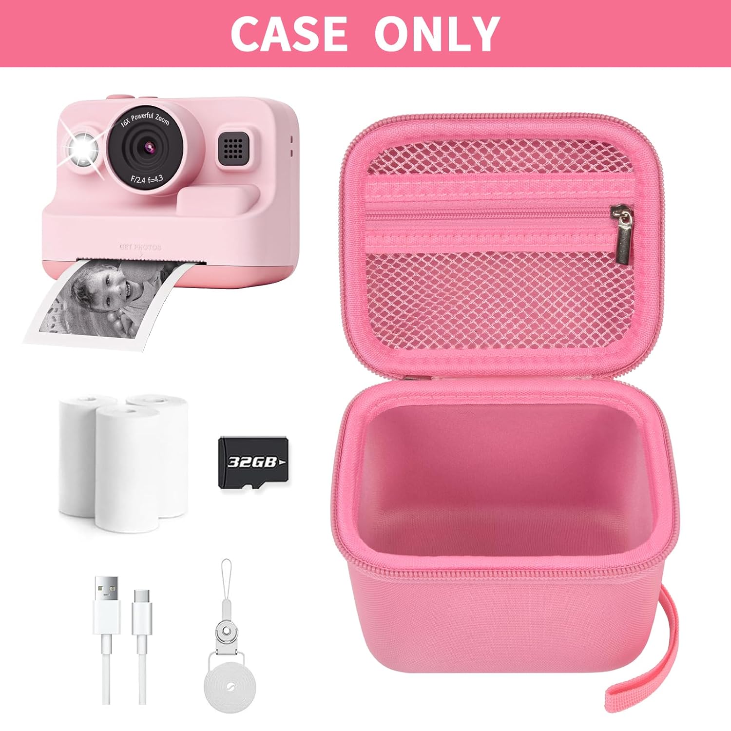 1. This instant print camera holder is specifically tailored for Dylanto cameras, ensuring a perfect fit and maximum protection for your precious camera equipment.2. Convenient mesh pocket: The kids instant camera case with a zippered mesh pocket that provides ample space for storing not only for Dylanto Kids Camera Instant Print, but also extra film, USB cable, batteries accessories. Everything is kept securely in one place for easy access.3. Full protection: this camera holder case is made of high-quality EVA material, offers splash-proof, dust-proof, shock-proof, and drop-proof protection for your camera and lens. 4. Easy access with a smooth zipper: The kids digital camera bag is equipped with a 360-degree smooth zipper, allowing you to effortlessly access your camera and accessories whenever you need them. 5. Spacious and organized: With its large capacity and zippered mesh pocket, this kid camera case provides ample room for storing and organizing all your camera accessories. Everything has its designated place, making your shooting process much more efficient.6. Durability and easy maintenance: Crafted with attention to detail, this camera bag boasts a sturdy and reliable construction. The zipper is designed to withstand frequent usage, ensuring longevity and smooth operation. 7. Portability on the go: This instant print camera case comes with a strap, makes it easy to hold with one hand or simply slip it into your backpack, bag, or suitcase.8. Stylish and versatile: the thoughtful girls toys storage bag gift for special occasions like Halloween, Christmas, birthdays, or Valentine’s Day.9.Whether you’re exploring breathtaking landscapes, documenting joyful moments with loved ones, or simply unleashing your creativity, this kids camera bag provides the perfect home for Dylanto camera and accessories. Package:Camera Storage Holder Organizer Bag with Mesh PocketNote: Only C