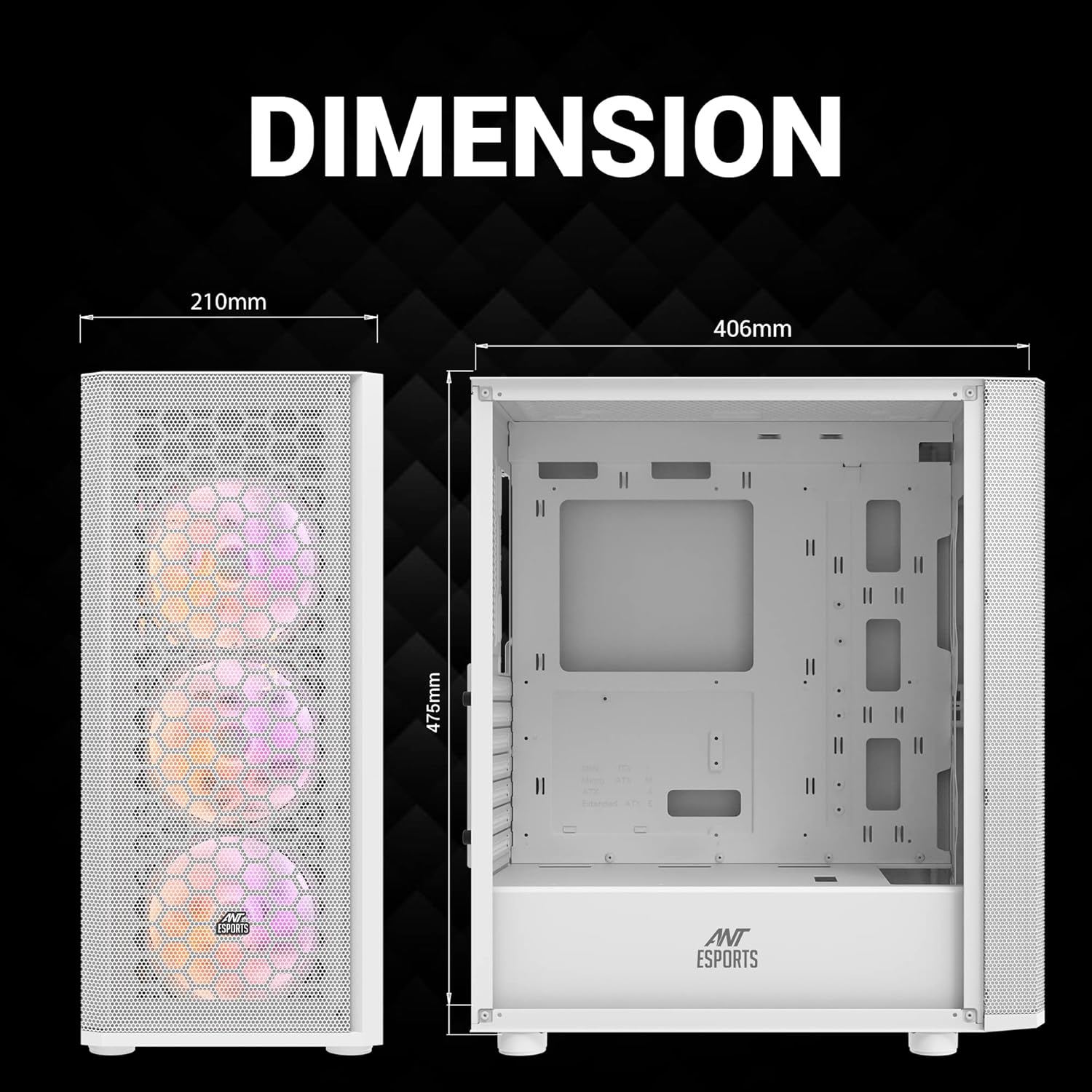 White, Mid-Tower, 406 x 210 x 475 mm