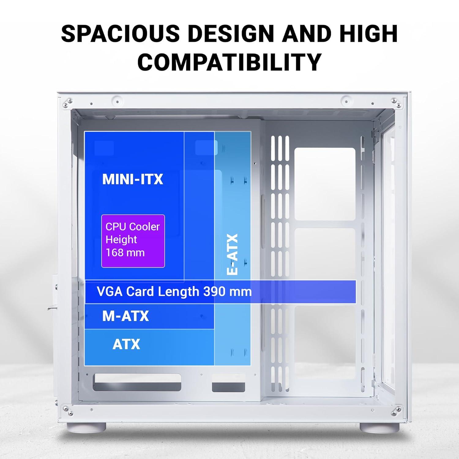 VGA Card Length : 390 mm ; CPU Cooler Height : 168 mm