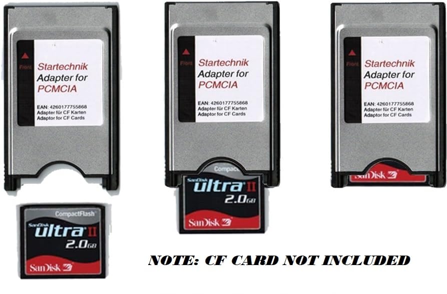 The adapter allows you to read CompactFlash cards from your camera directly through your laptop PCMCIA slot. It is the fastest way to access the card, and it appears just as a regular drive so all pictures can be drag-dropped between the card and your storage. The adapter supports all memory card sizes: 4MB 8MB 16MB 32MB 64MB 128MB 256MB 512MB 1GB 2GB 4GB 8GB 16GB etc NOTE: CF CARD NOT INCLUDE.