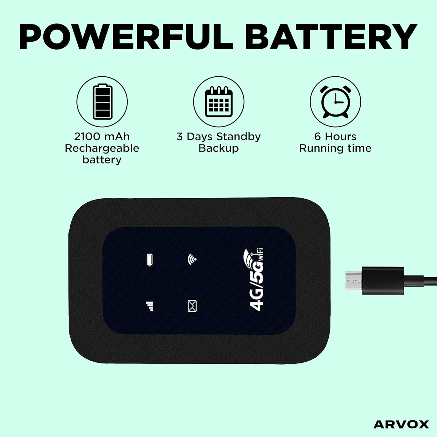 POWERFULL BATTERY: Powered by 2100mAh rechargeable battery which can run continuously up to 6 hours. 3 Days Standby Backup. Just TURN ON to connect the network or create a hotspot.