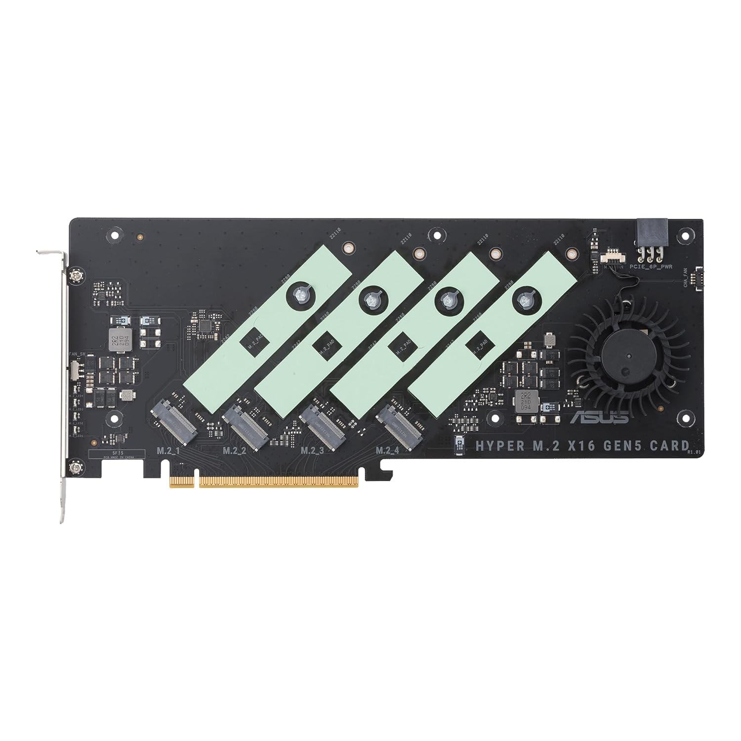 ASUS HYPER M.2 X16 GEN5 CARD can support up to 4*M.2 NVME SSD devices, for both AMD and IntelĀ® platform RAID functions. With PCIe Gen5 speed, providing up to 128GT/s bandwidth per M.2 slot, Maximum speed with 4 slots can reach up to 512GT/s total. Designed with an extraordinary thermal heatsink, and active blower-style fan, it can hold the heat from the latest M.2 NVME devices, and ease temperature-induced throttling that can affect performance during heavy, sustained storage loads.