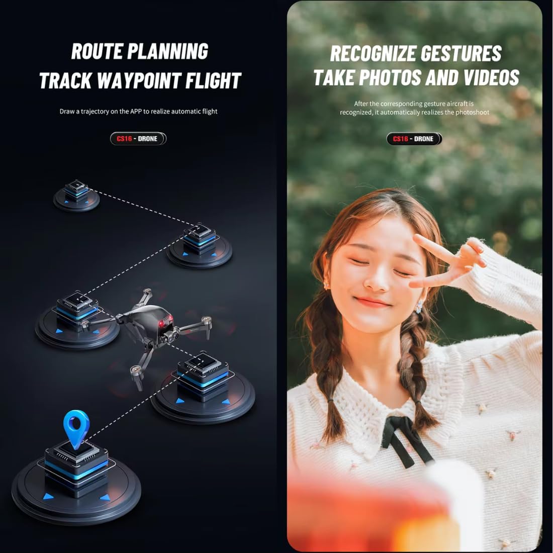 Drone Foldable WIFI 4K Triple CameraInfrared Obstacle AvoidanceGesture Controls For PhotographyWi-Fi Camera Remote Easy ControlFlips Bounce Mode, One Click Smooth Landing.App One Key Headless Mode functionalityFeatures: App-Controlled, FPV Capable, Integrated Camera, Obstacle Avoidance, Wi-FiPower Source: ElectricVideo Capture Resolution: 1080p FHDCamera Mount Type: 2-axisOperator Skill Level: Beginner, IntermediateIndoor/Outdoor Use: Indoor-OutdoorState of Assembly: Ready-to-GoProduct Weight: 188g
