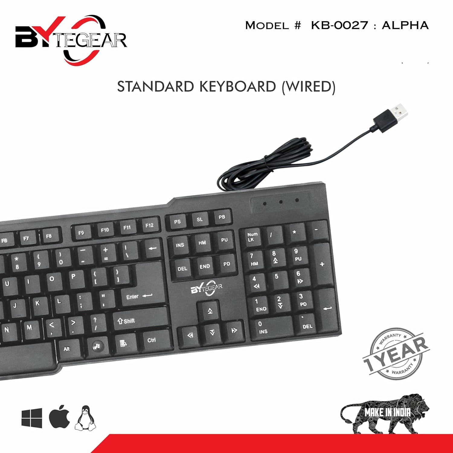 ByteGear Wired Keyboard – Standard, Durable USB Connection, Quiet Typing, Ergonomic Design, Full-Size Keyboard with Number Pad for PC & Laptop, Plug & Play, Spill Resistant, Windows Compatible (Black)