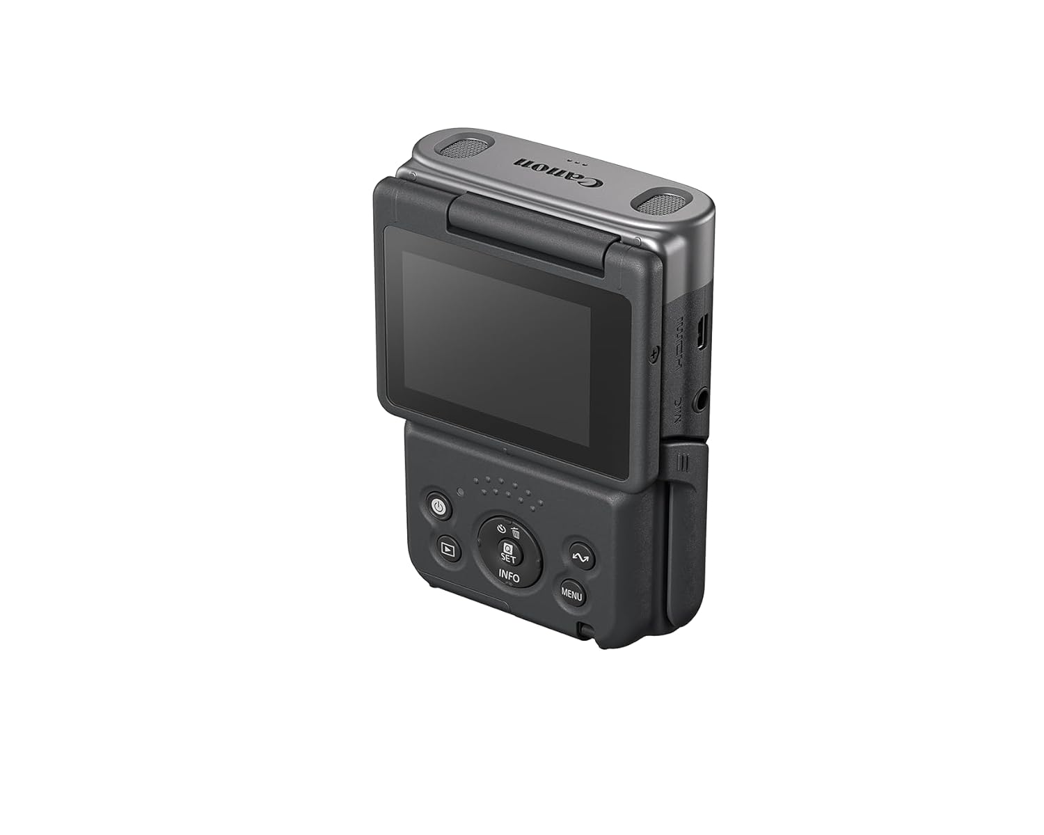 Channel your on-the-go creativity with the Canon PowerShot V10 Vlogging Camera for Content Creators. The PowerShot V10 is a vlog and still camera in a new highly portable form factor with components from the popular G-Series line that lets you create impressive videos. With stereo sound capture, a built-in stand, and easy live streaming, this cam is ready to go when you are. A 15.2-megapixel 1-inch back-illuminated CMOS sensor showcases its incredible low-light capabilities, and the fixed 19mm wide-angle lens (35mm equivalent) makes this 4K digital camera ideal for tight interiors, expansive landscapes, and everything in between. Featuring an innovative built-in stand that folds in both the front or back up to 30 degrees, the Canon PowerShot V10 content creator camera enables versatile shooting angles and hands-free operation. Plus, it’s compatible with traditional tripods, like our HG-100TBR Tripod Grip. As of firmware version 1.2.0 or later, you can enable Enhanced Image Stabilization to maximize image stability while shooting during fast walks. Capture 8-bit 4K video at up to 30 fps, or Full HD video at up 60 fps — use any of the 14 built-in color filters to change the mood and ambiance to fit the scene. Don’t let the size of the PowerShot V10 digital, portable video camera fool you. This is a vlogging studio in a compact package that can be operated with one hand to let you express your stories — it features a sleek, pocket-sized design for exceptional portability and ease of use.
