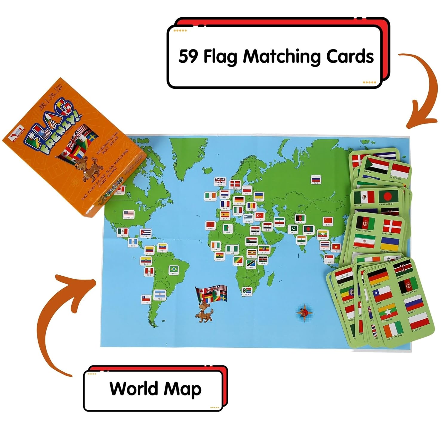 Includes 59 flags cards and a free world map.