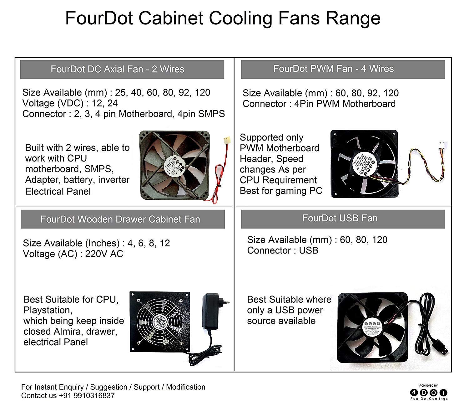 Fourdot coolings 120mm square 25mm thick size fan runs at 3000rpm speed and maintain temperature easily.