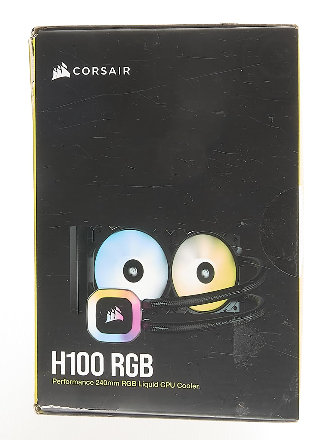 The CORSAIR H100 RGB all-in-one liquid CPU cooler delivers strong, dependable cooling and stunning RGB lighting. A high surface-area 240mm radiator dissipates heat and two CORSAIR SP120 RGB ELITE PWM fans provide superior cooling performance. Each fan boasts CORSAIR AirGuide technology to channel concentrated airflow and optimize cooling, against the colorful backdrop of eight individually addressable RGB LEDs on each fan and 13 on the pump head. Control your lighting with +5V ARGB motherboard control, or use CORSAIR iCUE software to synchronize RGB lighting (requires a CORSAIR iCUE RGB controller, sold separately). With full LGA 1200/115X/2066 and AM4 compatibility, a three-year warranty, and easy installation into almost any case, the H100 RGB makes your PC a liquid-cooled light show.