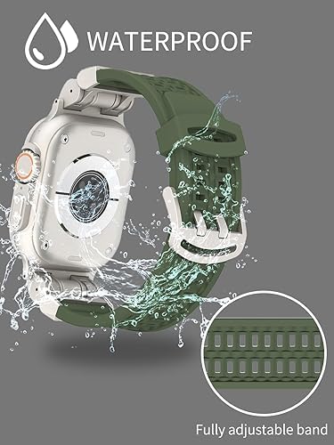 Croiky Mecha Double Claw Soft Silicone Strap for Apple Watch Ultra 2 | Ultra Straps 49mm 45mm 44mm 42mm with Durable Metal Connector iwatch strap Series 9/8//7/6/5/4/3/2/1/SE2/SE – Green