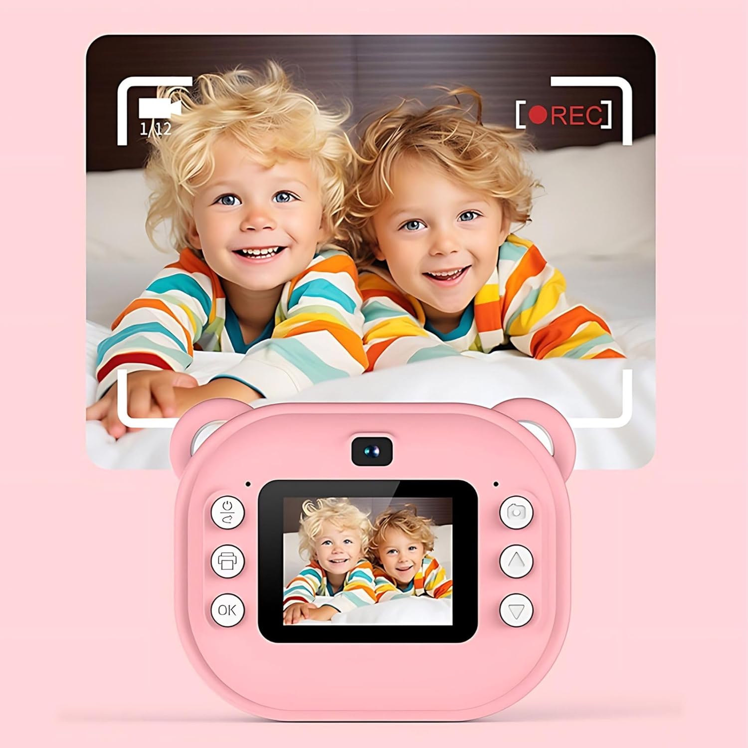 Digital Video Instant Print Camera for Kids, with Print Paper, Christams Birthday Gifts for Girls Boys (Pink)