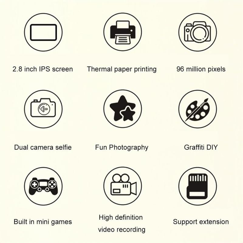 ♌ Multifunctional & Easy to Use: Offers 6 functions including photography, HD video, printing, music, playback, and games; includes fun filters, photo frames, and more for endless entertainment.