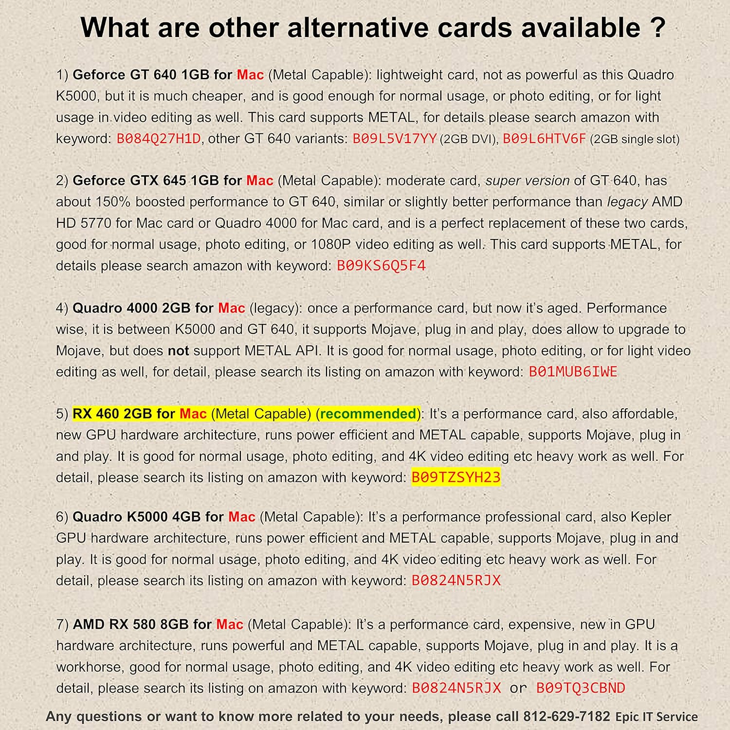 Epic IT Service – AMD RX 460 for Mac Version, with 2GB GDDR5 PCI Express Gen 3.0, DVI-I DL, HDMI 2.0, DisplayPort 1.4, DirectX 12 (Boot Camp) Performance Board – OEM