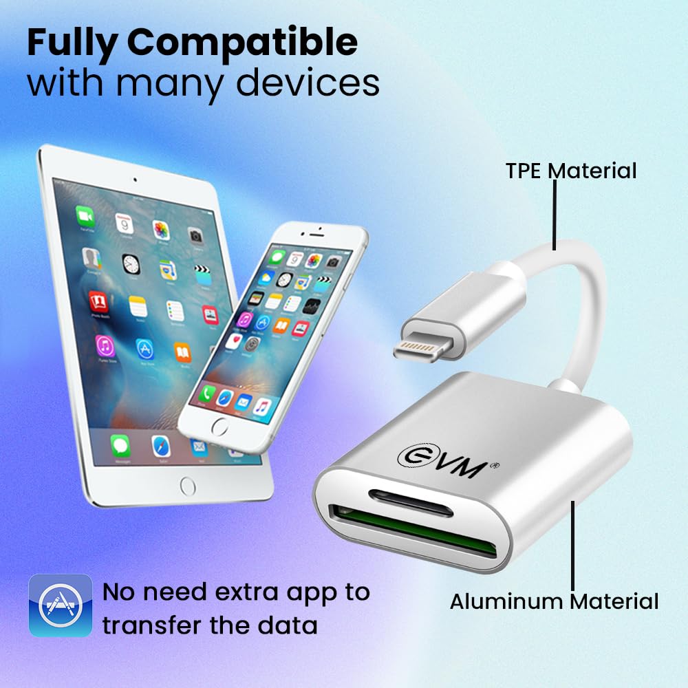 EVM 2in-1 OTG Apple Accessoty – SD Card + TF Dual Card Slot Memory Card Reader – 3 Years Warranty (Silver)