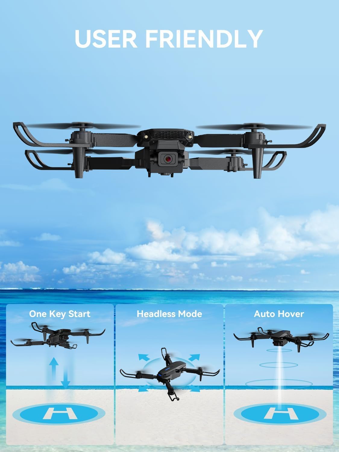 ★【Easy Operation and Hover Stability】Just ??? key is all it takes to take off and to land the drone, keep it ?????? to control for even beginners. Other functions, like Headless Mode, Speed Adjustment functions, Altitude Hold Mode, Hand Gesture Photo/Video. Best choice with enough ??? for beginners.