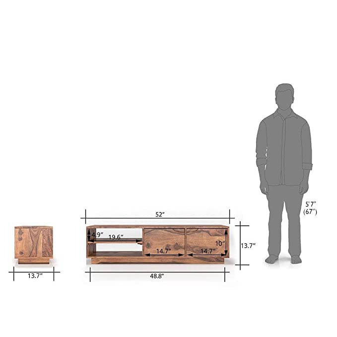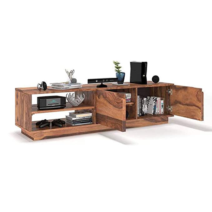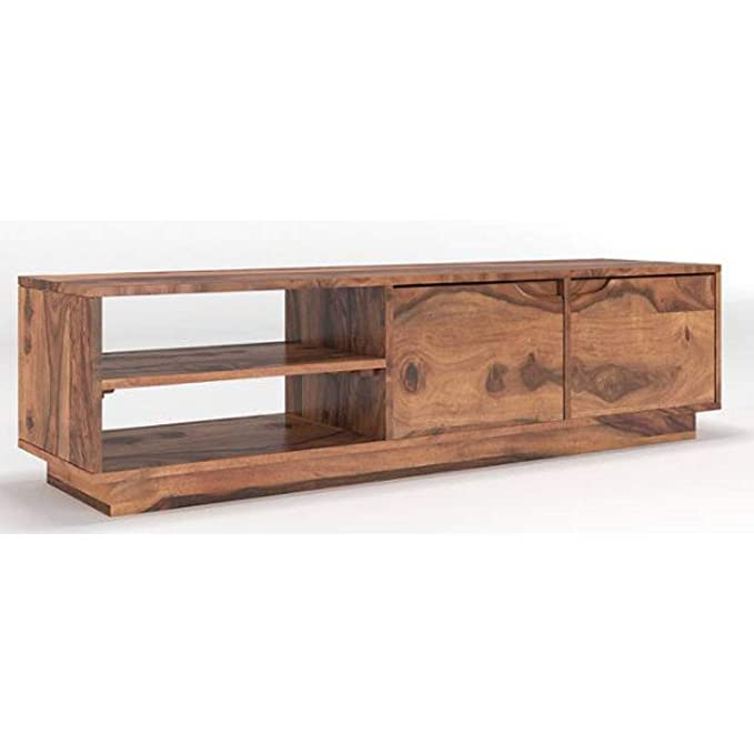 ✅Foresta Decor Wooden Entertainment Tv Unit for Living Room Television Stand with 2 Door Cabinet & 2 Shelf Storage for Bedroom Sheesham Wood, Natural