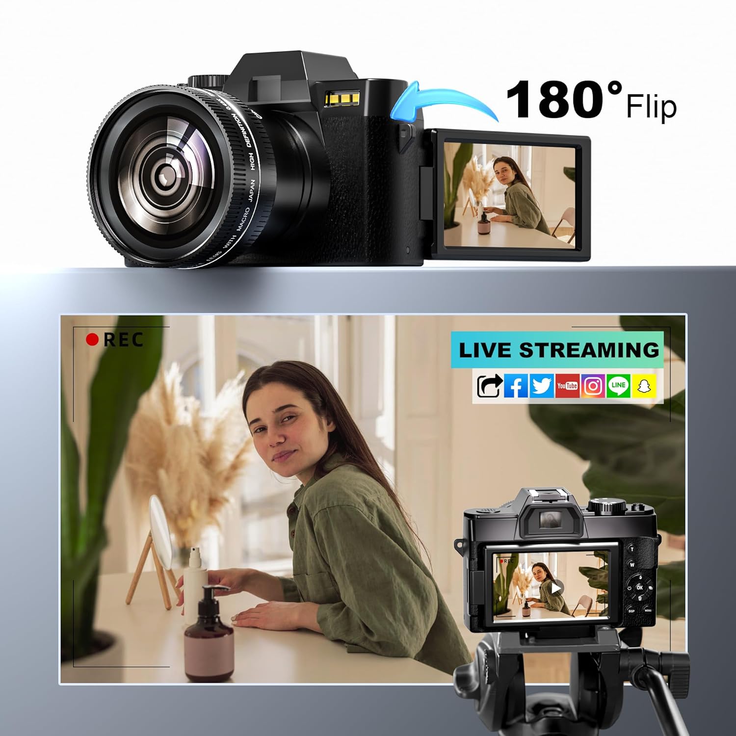 【4k&48MP Digital Cameras】This camera has a 3-inch screen that can rotate 180 degrees, so you can view it while recording or take photo, making it easier to selfie. This is a perfect choice for entry-level users and beginners/photography enthusiast.