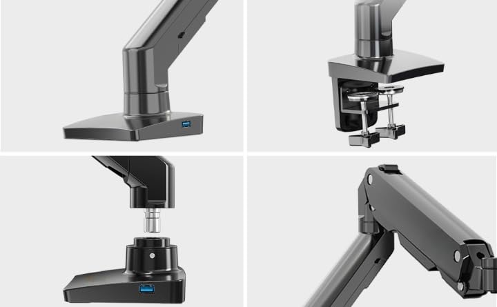 ③STURDY & STABLE CONSTRUCTION: Arm stand with both C-Clamp mounting and Grommet Mounting are available(Desk thickness 0.8~3.1”). Made of top quality steel and aluminum alloys, heavy duty construction keeps your arm mount stable. Extra USB Charge hub is available.