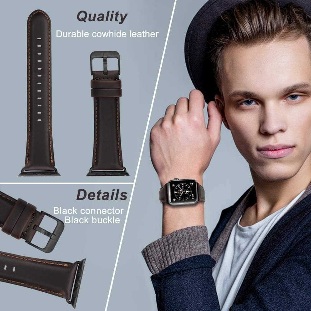 Unique style : Distinctive fine texture appears when the band is around your wrist, exquisite craftsmanship for long life.Vintage Leather : Made of high quality layered calfskin, comfortable on the wrist, resistant to sweat and wear.Perfectly Fit : The same as the original adapters provide a secure connection between the leather band and Apple Watch.Small Details : The strap is already equipped with high-quality stainless steel connectors that make mounting on the Apple Watch a breeze.