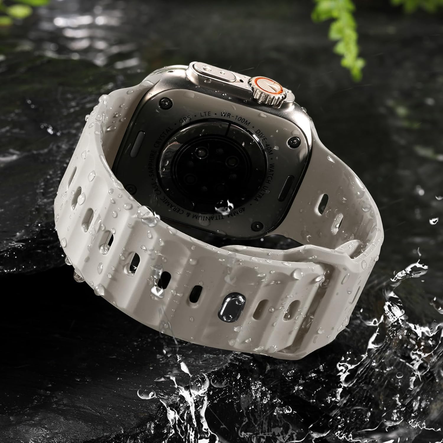 Go-to Band for Workout: We’ve reinforced the stainless steel clasp on this apple ultra watch band for extra secure lock that gives peace of mind along your active journey. The waterproof apple watch band silicone is ready for everyday wear and tear.