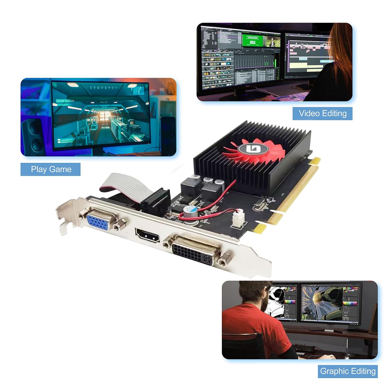 Glorto Radeon HD 5450 Graphics Card offers the most functionality in its class with complete DirectX 11 support and advanced graphics, display features and technologies. Designed to deliver a feature laden gaming/computing experience, Radeon HD 5450 enables a seamless HD gaming experience with amazing image quality. At the heart of the entertainment experience on the PC, things like video playback, editing and transferring content to portable media players are now fast and easy. Supports Windows 7, Windows 10, and future DirectX11 games giving users incredible system performance in an energy efficient card that is easy to install with no external power supply needed.