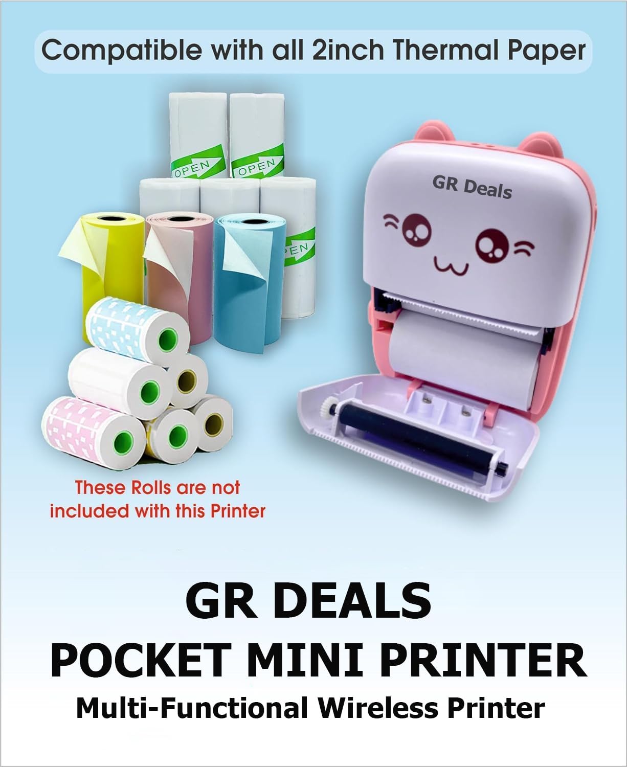 GR Deals Mini Thermal Printer Inkless Bluetooth Pocket Printer for Prints Picture List Memo Receipt Tags Barcode Labels Compatible with I-OS, Android.