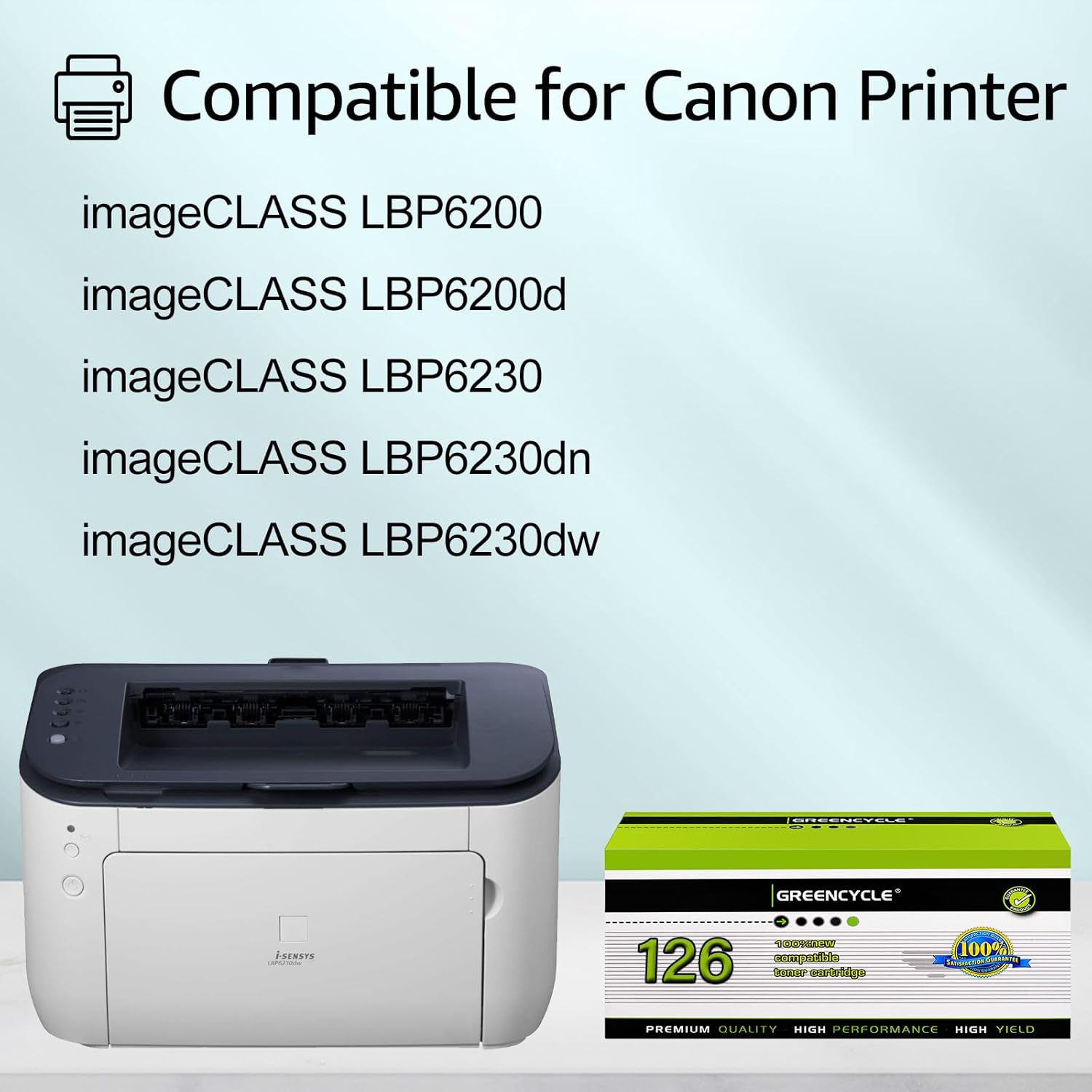 GREENCYCLE 2 Pack Compatible Toner Cartridge Replacement for Canon 126 CRG-126 CRG126 3483B001 Black for use in Canon ImageClass LBP6200d, and LBP6230dw Wireless Laser Printers Wireless