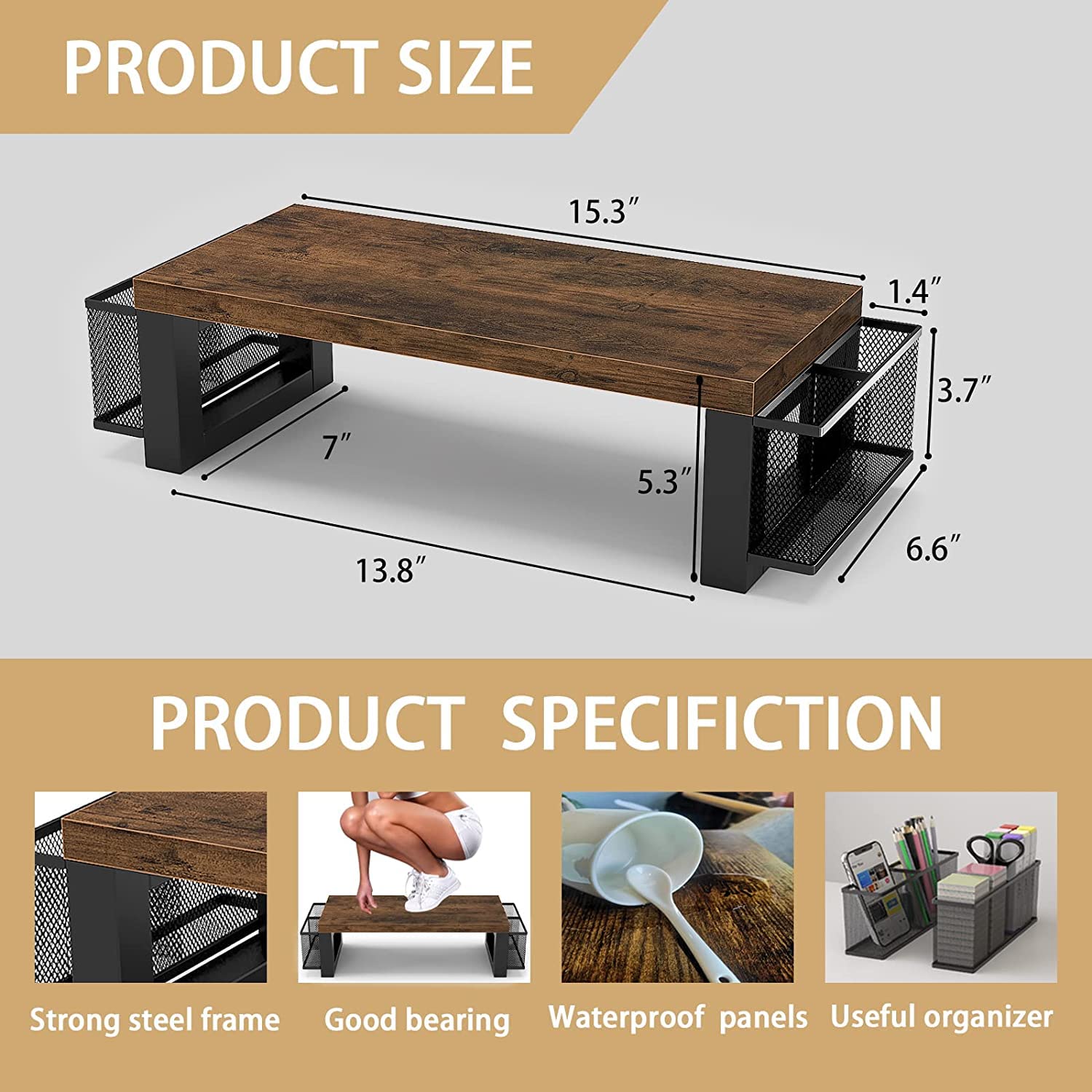 Computer Monitor Stand with Storage:Builded in 2 storage holder on both sides. Ideal for organizing office supplies and accessories. While extra space of stand underneath for storage. A useful way to save space and decrease mess.