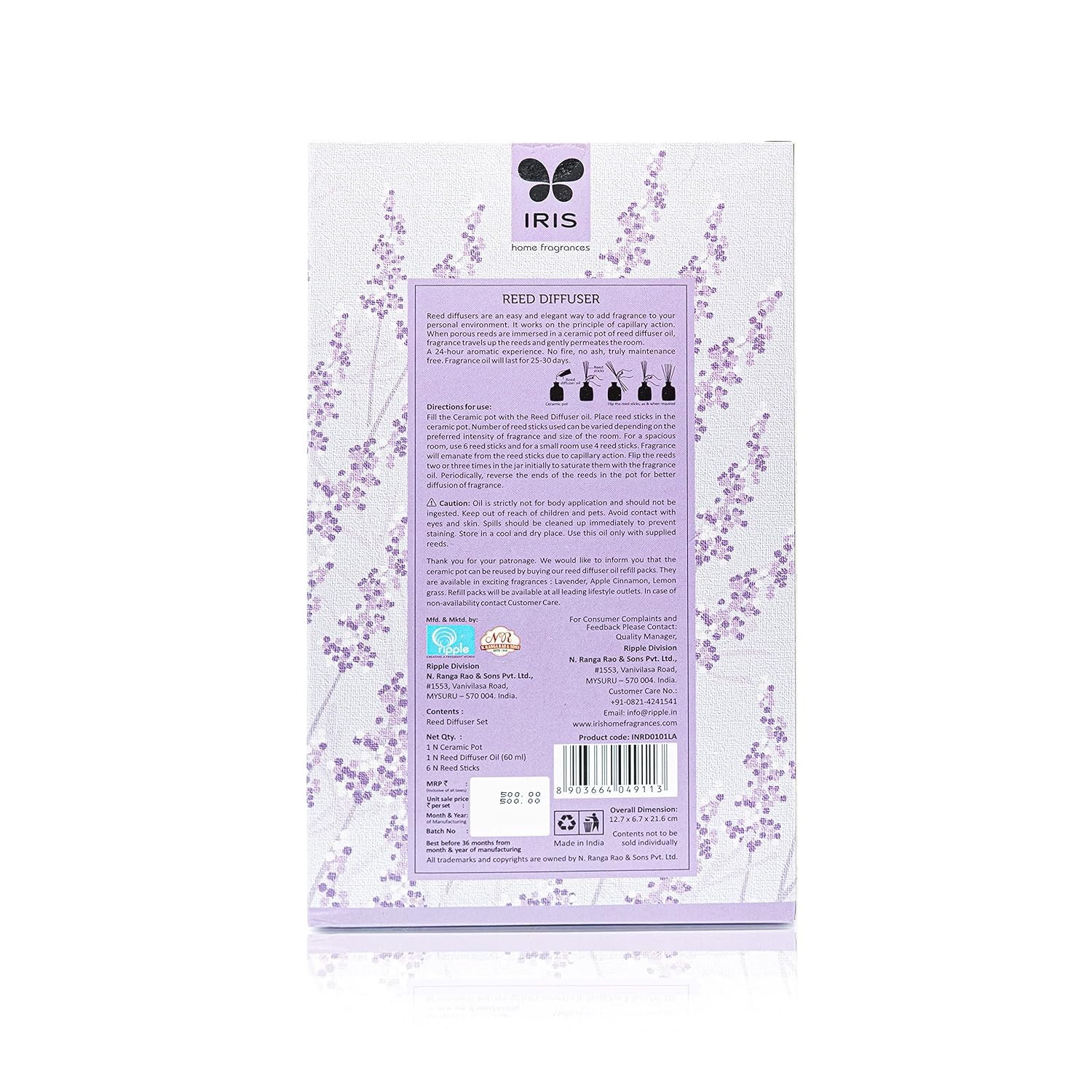Iris Lavender Home Fragrance doesn’t leave behind any liquid droplets in the air,other than a clean and dry, wonderful aroma in your home.