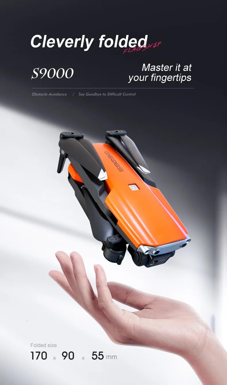 JETRA Presents : Product description: ★ Obstacle Avoidance: Say Goodbye to Difficult Control ★ Product name: S9000 OBSTACLE AVOIDANCE DRONE ★ size Folded: 17x9x5.5m / unfolded: 32x32x5.5cm ★ flight system: Four-way intelligent obstacle avoidance/optical flow visual hover ★ flight function: Intelligent obstacle avoidance, 4K ESC lens, high-definition dual camera switching, Optical flow visual hover, wifi high-definition image transmission, bright LED lights, Mobile phone control, gravity sensing. 50x zoom, beauty shooting, Track fingering, one-key take-off and landing/one-key return, headless mode, 360° stunt tumbling, MV. production, speed switching ★ Lens parameters: 4K front (90° remote control) + bottom camera ★ use battery Body battery: modular lithium battery Remote control battery: AA battery*3 (sold separately) ★ control method: Handle remote control, mobile phone remote control (only aerial version) ★ battery life: about 18 minutes ★ flight distance: about 200 meters