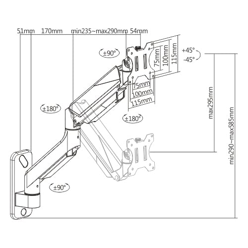 FULL MOTION -Adjustable arm offers 360 degree rotation, 90 degree swivel, and 90 degree tilt. Monitor can be placed in portrait or landscape shapes.