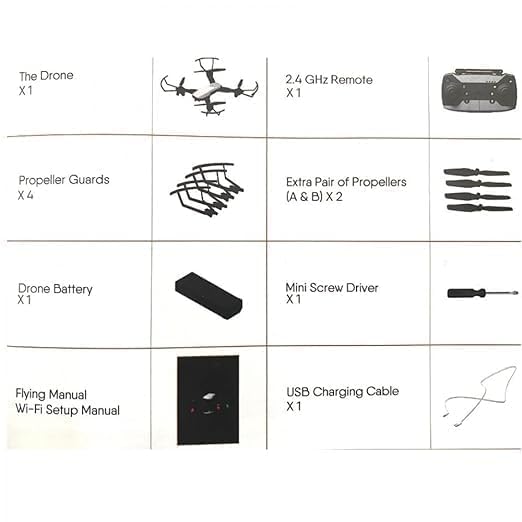 Pack Contains: Quadcopter, Transmitter (Remote Control), Mobile Stand, 4 Installed Propeller, Spare Propeller, 4 Drone Support, User Manual, ChargerPack Contains: Quadcopter, Transmitter (Remote Control), Mobile Stand, 4 Installed Propeller, Spare Propeller, 4 Drone Support, User Manual, Charger.?Drone Battery – 3.7V 1600mAh Li Po Battery (Included) , Remote – 4 AA Battery (Not Included).