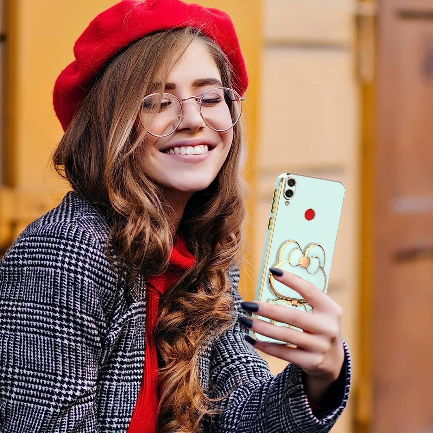 KARWAN Silicone ? 3D Cat Back Case And Cover With Stand Compatible For Redmi Note 7| Stand And Mirror|Camera Protection|Electroplated|Folding Stand-Mint
