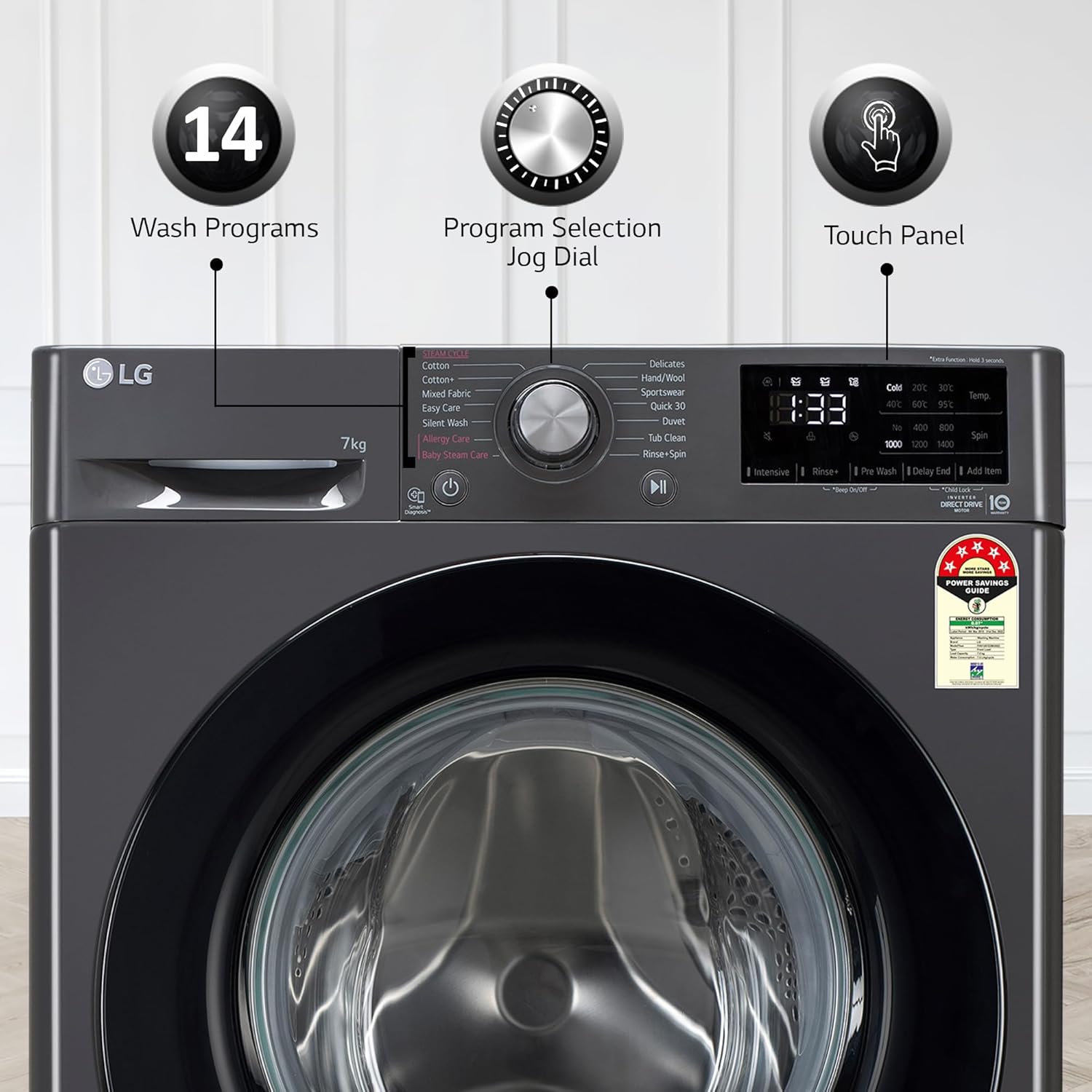 Fully-automatic front load washing machine with Hygiene Steam removes allergens & AI Direct-Drive Technology: Best Wash Quality, Energy and Water efficient