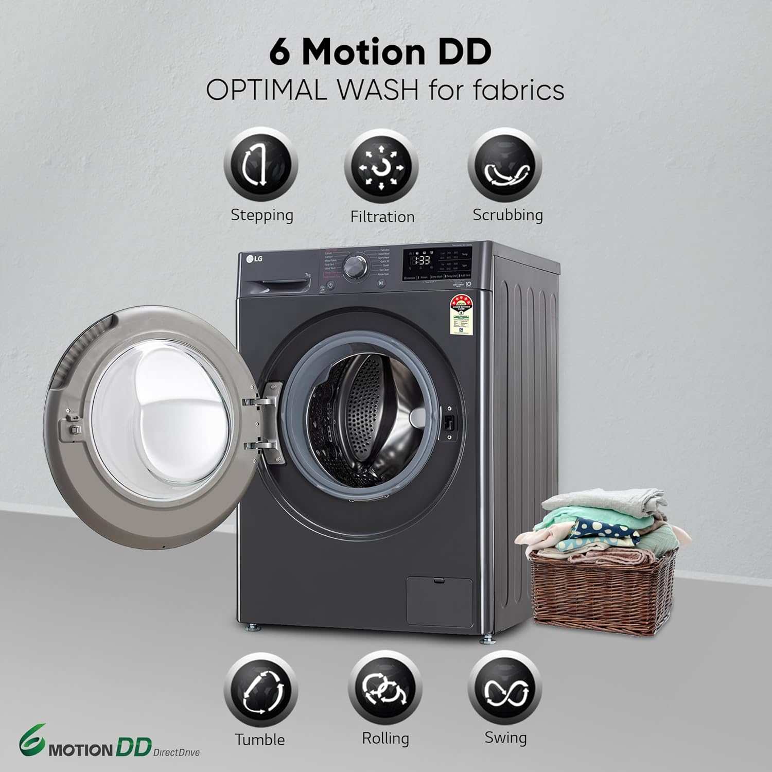 Washing clothes by hand is never a good way because you can never get your clothes to be absolutely clean and the tremendous time and effort that you must devote become absolutely worthless. The need for a machine that would solve all your washing as well as drying problems is, therefore, heartfelt. LG 7 Kg 5 Star Inverter Fully Automatic Front Load Washing Machine brings all the exciting features to solve your problems. It comes with effective usage and adequate tech support which makes it a perfect option for modern-day use and gives a perfect solution for daily use ensuring all your garments are washed according to your needs. The direct drive motor that powers our washing machines is super reliable and quiet, making your machine less vibrating and your machine less noisy. With a 7-kg capacity and compact design, this washing machine is perfect for your family’s daily cleaning requirements and as well as fitting in terms of living space. With a 5-star rating, you can count on the efficiency of this washing machine. Additionally, the LG 7 Kg 5 Star Inverter Fully Automatic Front Load Washing Machine’s price is budget-friendly. This washing machine comes loaded with multiple features and functions to ease your cleaning experience. Its ergonomic design makes it a perfect fit for your house and its stainless-steel Tub makes sure it is durable for a longer period. The other feature it includes is AI Direct Drive, Steam and smart diagnosis.
