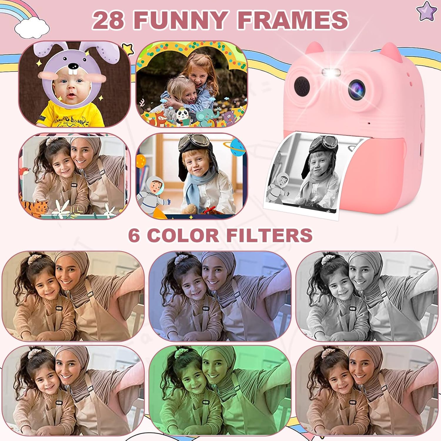 [Multifunctional and Easy to Operate] ?Our kid’s camera offers color photography, HD video, black and white printing, playback, and games. It’s easy to operate and provides endless fun. The camera has built-in 6 color filters, 20 cartoon photo frames and characters, and supports continuous shooting, timed shooting, and more. Let your children capture every meaningful moment of their childhood. ??