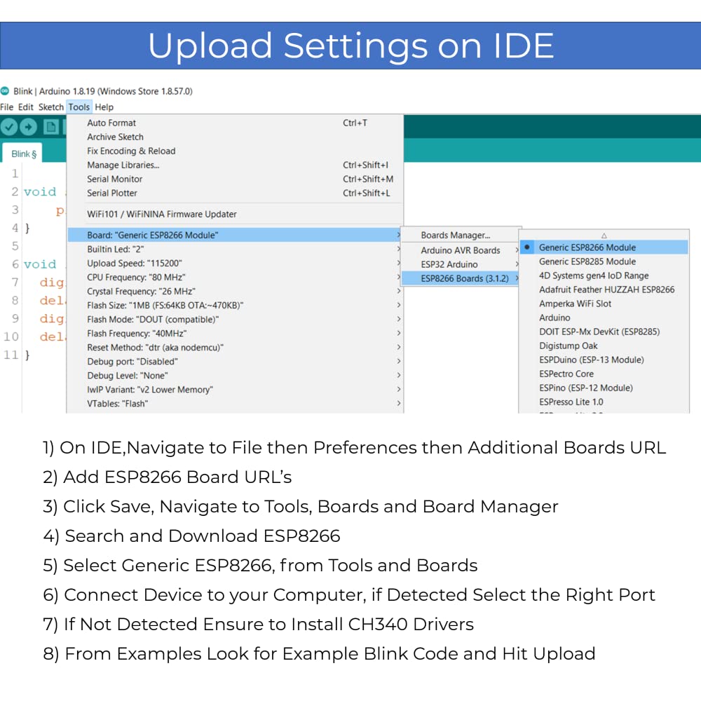IDE Settings to Upload Your Code on the Board