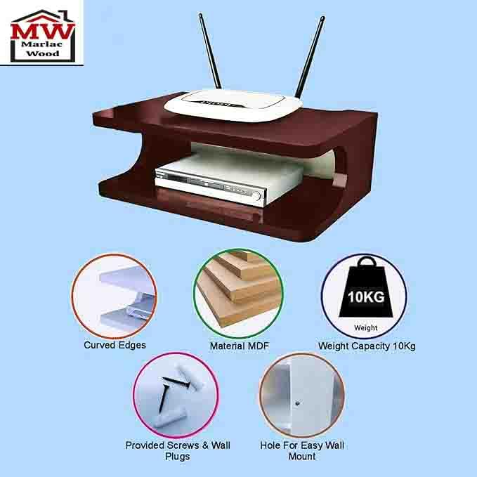Marlac wood Set top Box Stand | WiFi Router Holder Wooden Wall Shelves | Setup Box Stand for Home | Wall Mount Stylish WiFi Router Holder TV Cabinet Living Room Furniture