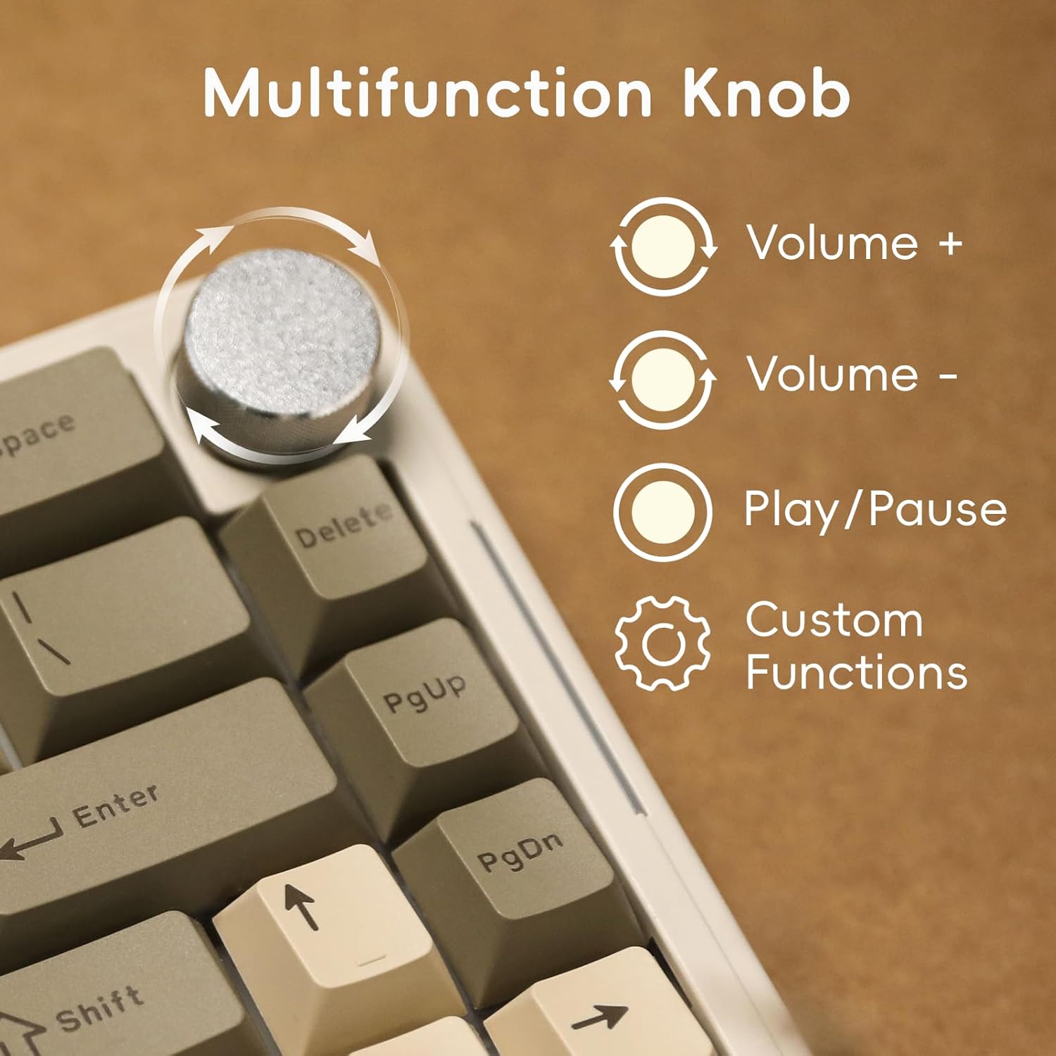 【NKRO & Premium PVC Type-C Cable】 The Ajazz AKS068 Pro doesn’t compromise on performance. Featuring lubed plate-mounted stabilizers for customization ease and NKRO for conflict-free multi-key inputs, it’s a powerhouse of functionality. The included 1.6m PVC Type-C cable ensures a reliable and stylish connection for all your computing needs.