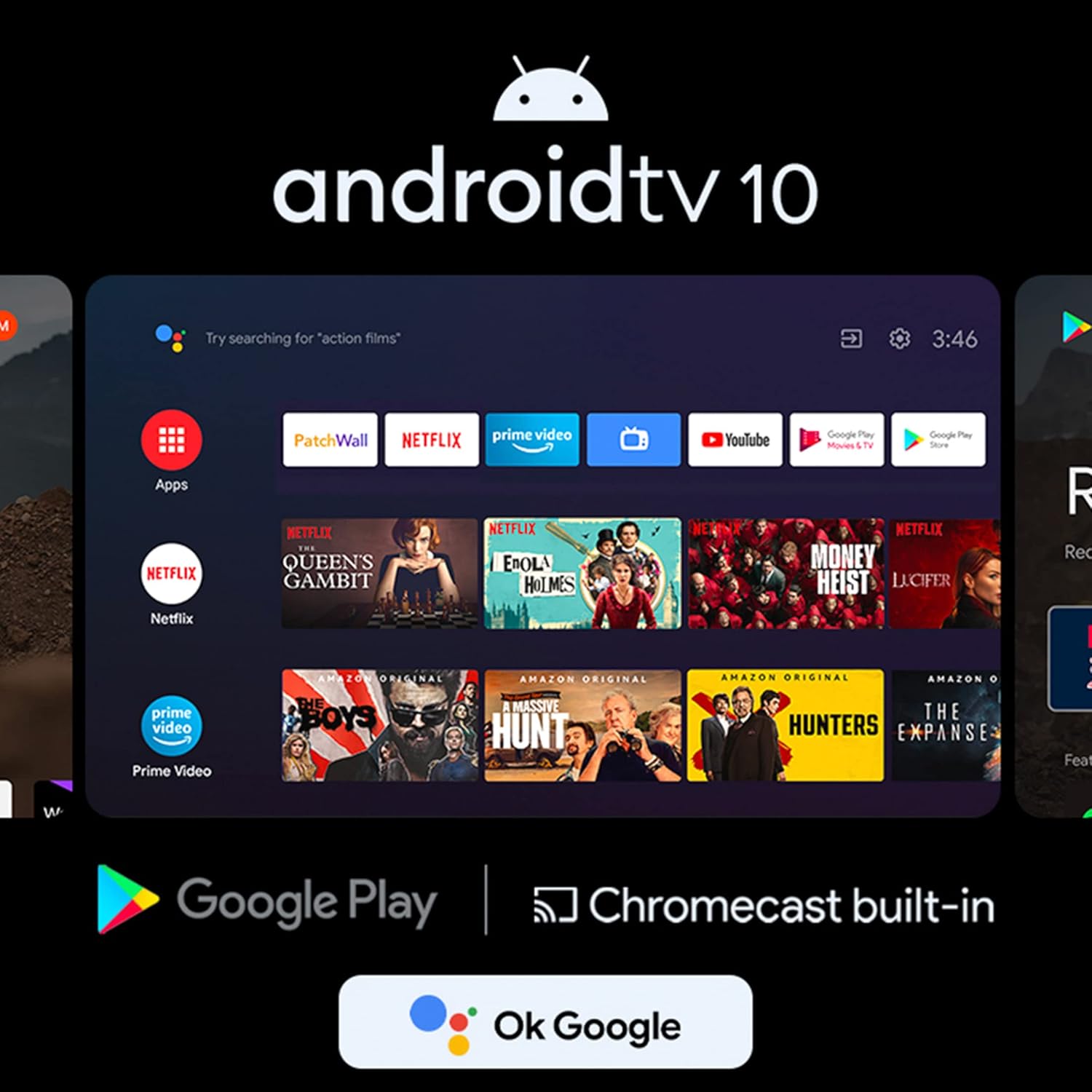 Smart TV Features : Android TV 10 | PatchWall 4 with IMDb integration | Kids Mode with Parental Lock | 75+ Free Live Channels | Universal search | Language Universe (16+ Languages) | India’s Top 10 | Miracast | Supported Apps: Prime Video | Netflix | Disney + Hotstar | YouTube | Apple TV | 5000+ apps from Play Store | Quad core processor | Built-in Wi-Fi | Chromecast built-in | Ok Google | Auto Low Latency Mode | 2GB RAM + 32GB Storage | Hands-free Google Assistant