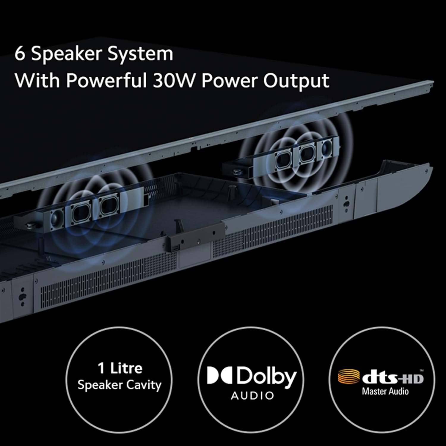 Sound: 30 Watts Output with 6 Speakers setup | Dolby Audio | DTS-HD | Dolby Atmos pass through eARC