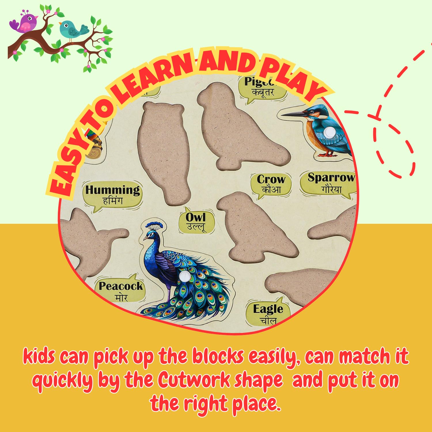 Educational Wooden Toys for Kids: This bird puzzle game helps children to learn about different birds, making it a fun and effective learning games for kids for age 3 and under.