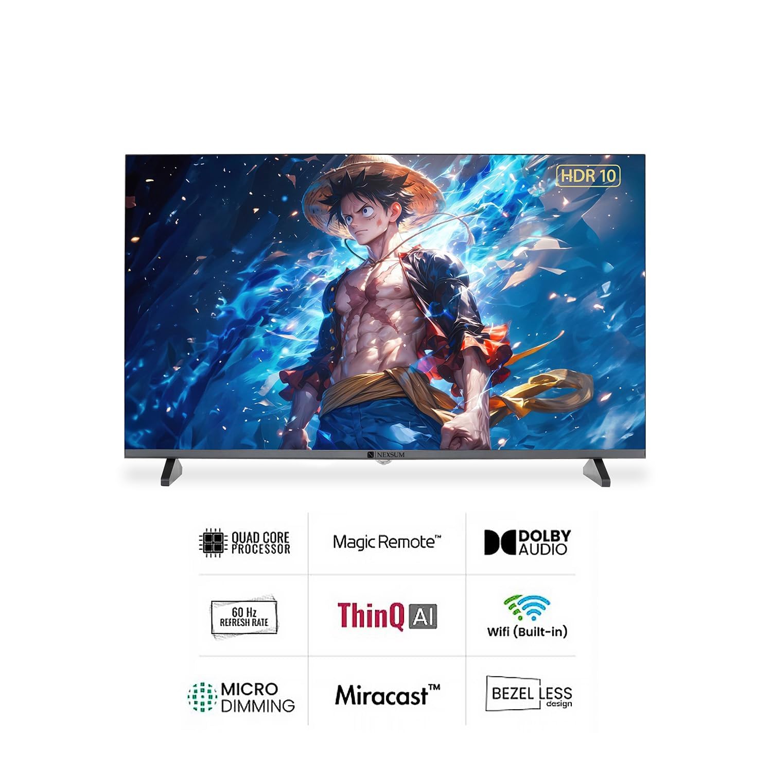 In the panoramic landscape of television innovation, the NEXSUM TV emerges as a shimmering beacon of technological marvel and aesthetic mastery. It ensures not just a viewing experience but a sensory journey that captivates, entertains, and mesmerises. Elevate your living space and treat your senses to the splendor they deserve. With NEXSUM TV, every moment is a masterpiece in the making. Join the revolution of unparalleled entertainment today. ARM Quad Core Processor At the heart of the NEXSUM TV beats its ARM Quad Core Processor. With its exceptional processing capabilities, this processor stands as a guarantor of lightning-speed performance, be it streaming your favourite shows, launching applications, or gaming marathons. The quad-core dynamo ensures a seamless experience, eliminating lags and heightening responsiveness. Bezeless Design Marrying function with finesse, the NEXSUM TV boasts a nearly borderless display. This design marvel amplifies immersion, drawing you into the heart of the action while doubling as a contemporary masterpiece that complements any home decor.
