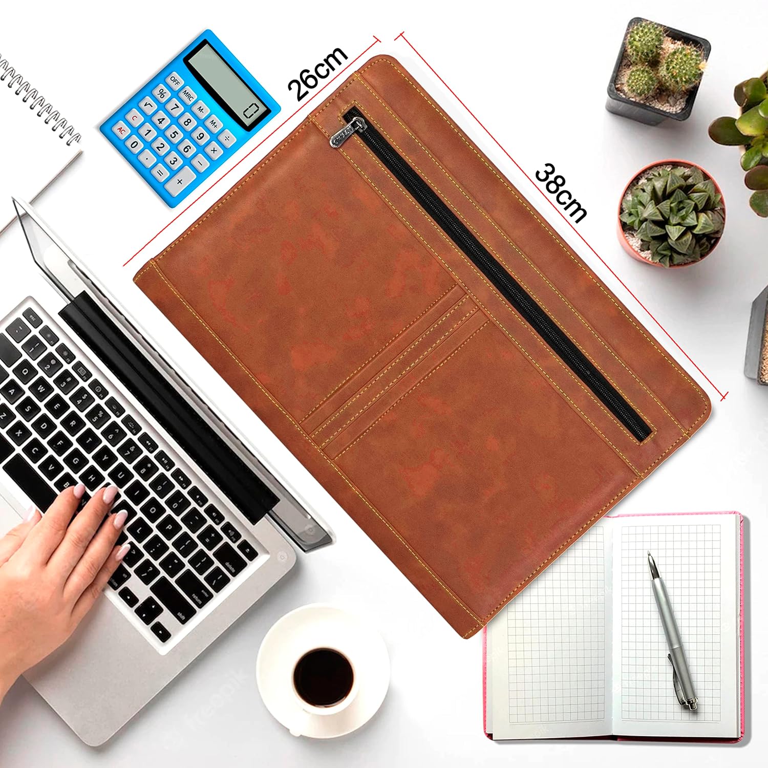 NISUN PU Leather 4 Ring Professional File Folder for Documents Certificates, Conference Folder, File with 20 Leafs (Tan)
