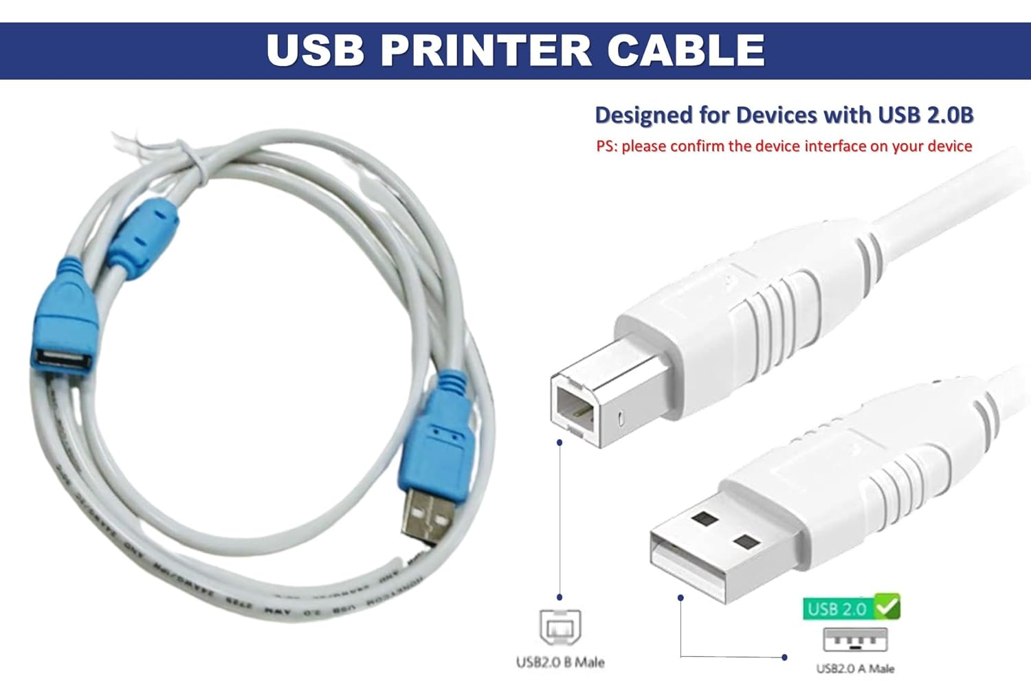 Up to 480 Mbps transfers data speed for USB 2.0 devices, the printer cable is backwards compliant with full-speed USB 1.1 (12 Mbps) and low-speed USB 1.0 (1.5 Mbps)