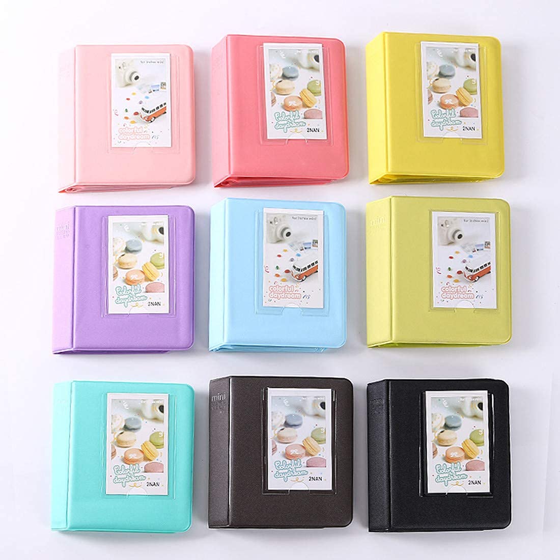 Suitable for 64 photos taken with Instax cameras or PIVI printers Compatible with Photos taken with Instax Mini 9 Mini 8 Mini 70 7s 25 50s Films (photo size: 8.5*6 cm)Made with PVC (Plastic) hardcover and transparent plastic slides as photo cover pages inside Specifications: Photo Capacity: 64Material: PVC Photo size: 8.5*6 cm Type: Photo Holder / Credit Card holder Compatible with: Instax Mini 9 Mini 8 Mini 70 7s 25 50s Films Package Includes:1x Mini Photo Album 64 Pockets 3 Inch Credit Card Size Album