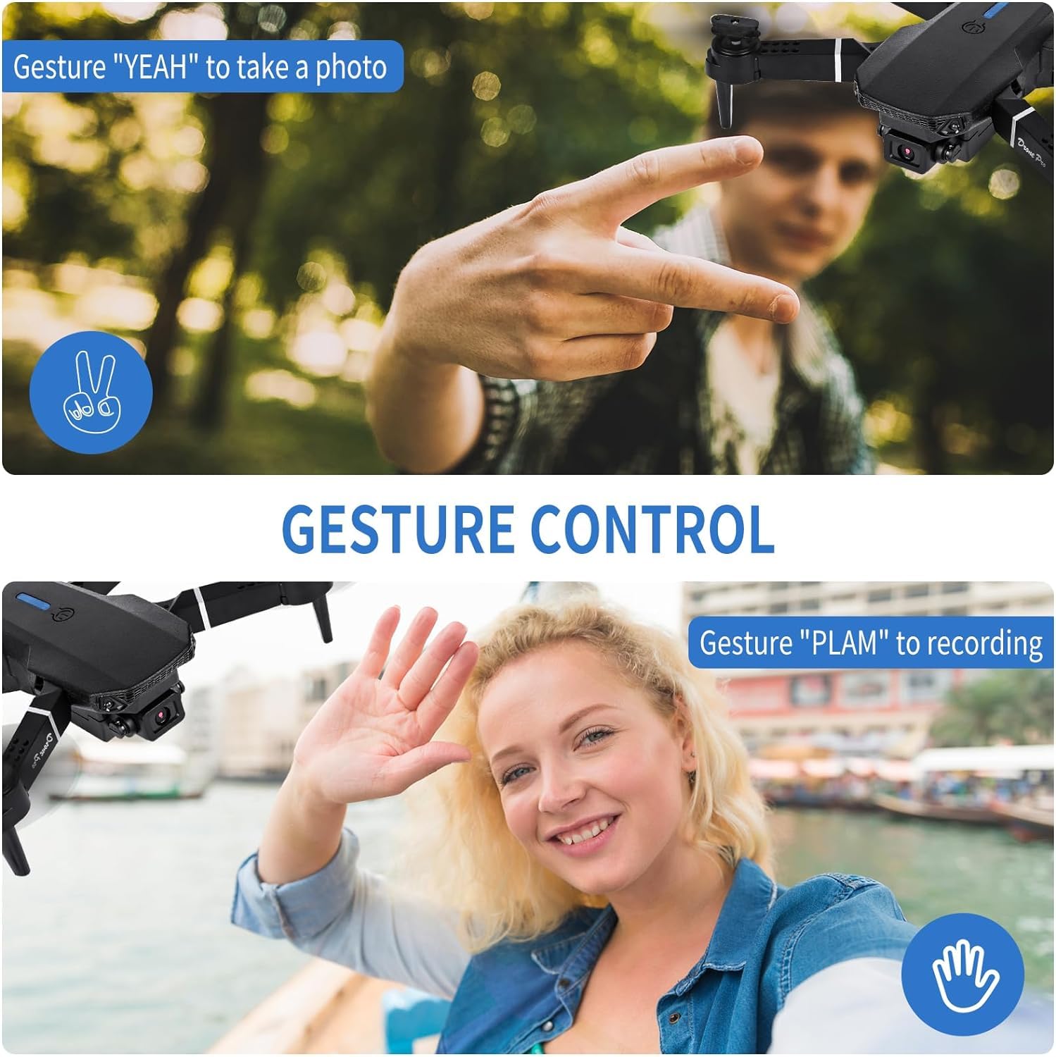 Gesture control & path drawing: Effortlessly snap selfies with gesture control – just raise your hand or make a V sign, and the remote control drone captures photos and videos. Draw a path on your phone screen, and watch as the drone automatically follows the route, ensuring an interactive flying experience.