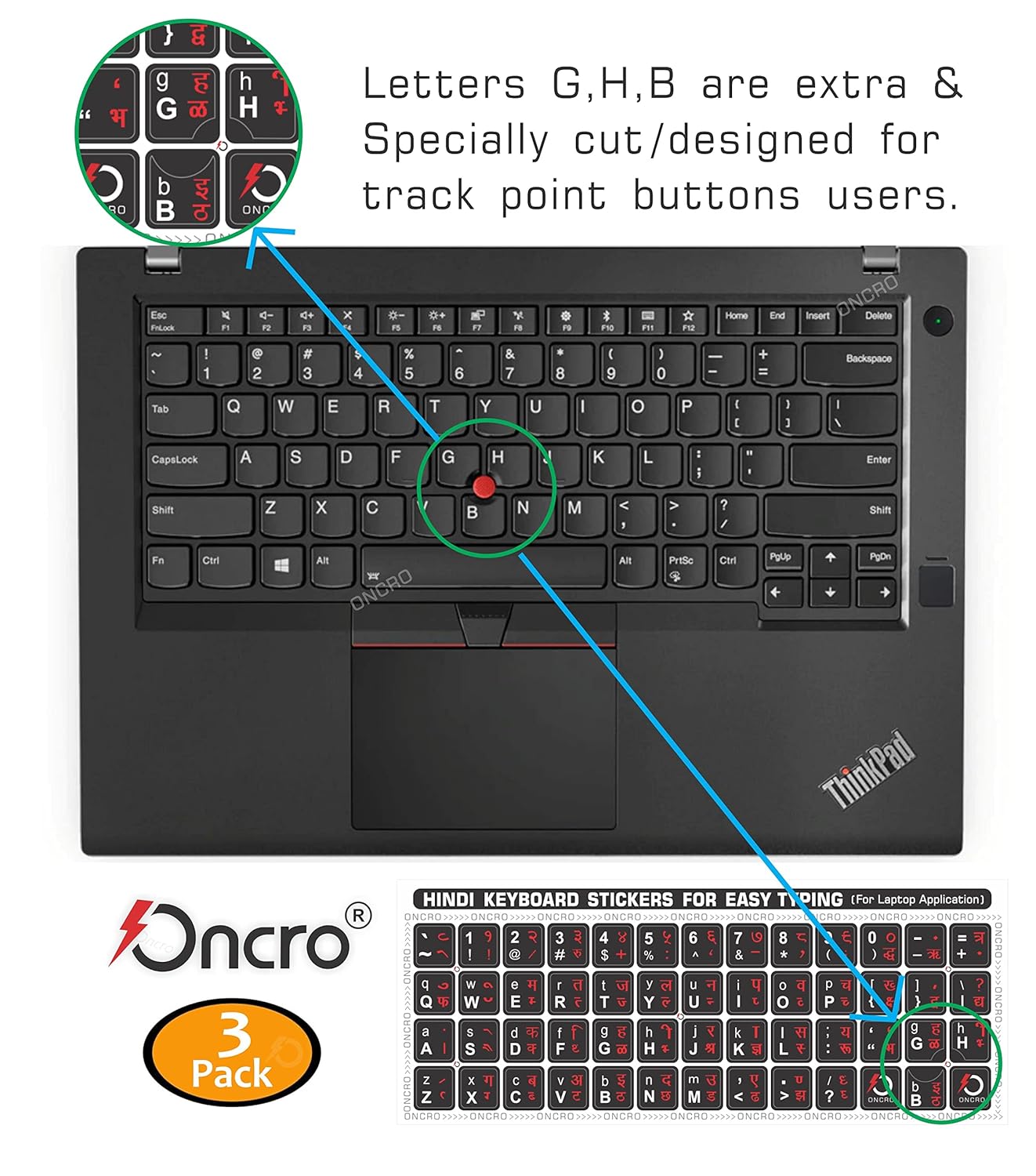 ONCRO® 3 pcs, Hindi Keyboard Sticker, English Hindi Typing Keyboard Language Sticker Black for Computer Laptop Compatible Fonts kundli krutidev (Hindi Fonts Like Devanagari, Mangal not Supported)
